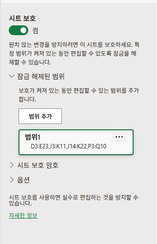 시트보호 옵션은 동시 작업 중 자료 손실을 막기위한 최소한의 장치입니다. 공유 작업을 하실때 설정하시길 권장합니다.