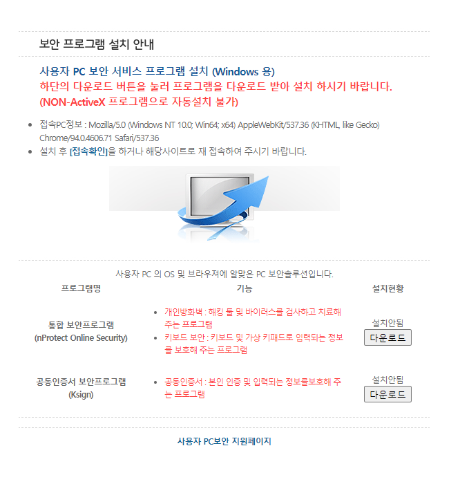 보안프로그램을 설치해도 계속 아래 단계가 반복됩니다. 이러한 문제가 k에듀파인 지원에도 많이 접수가 되어 있어, 팝업으로 해결방법을 안내중입니다.