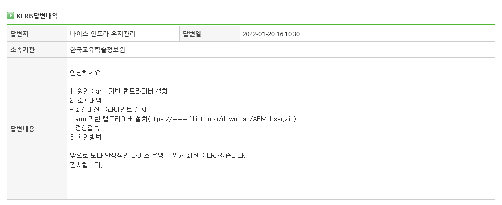 학교 현장에 arm이 적용된 pc가 보급되기 시작하면서 사용자들의 개선 의견이 나이스 광장에 몇 건 등록이 되기 시작하고, 보안담당 업체에서는 arm 지원 툴을 서비스하기 시작하였습니다.