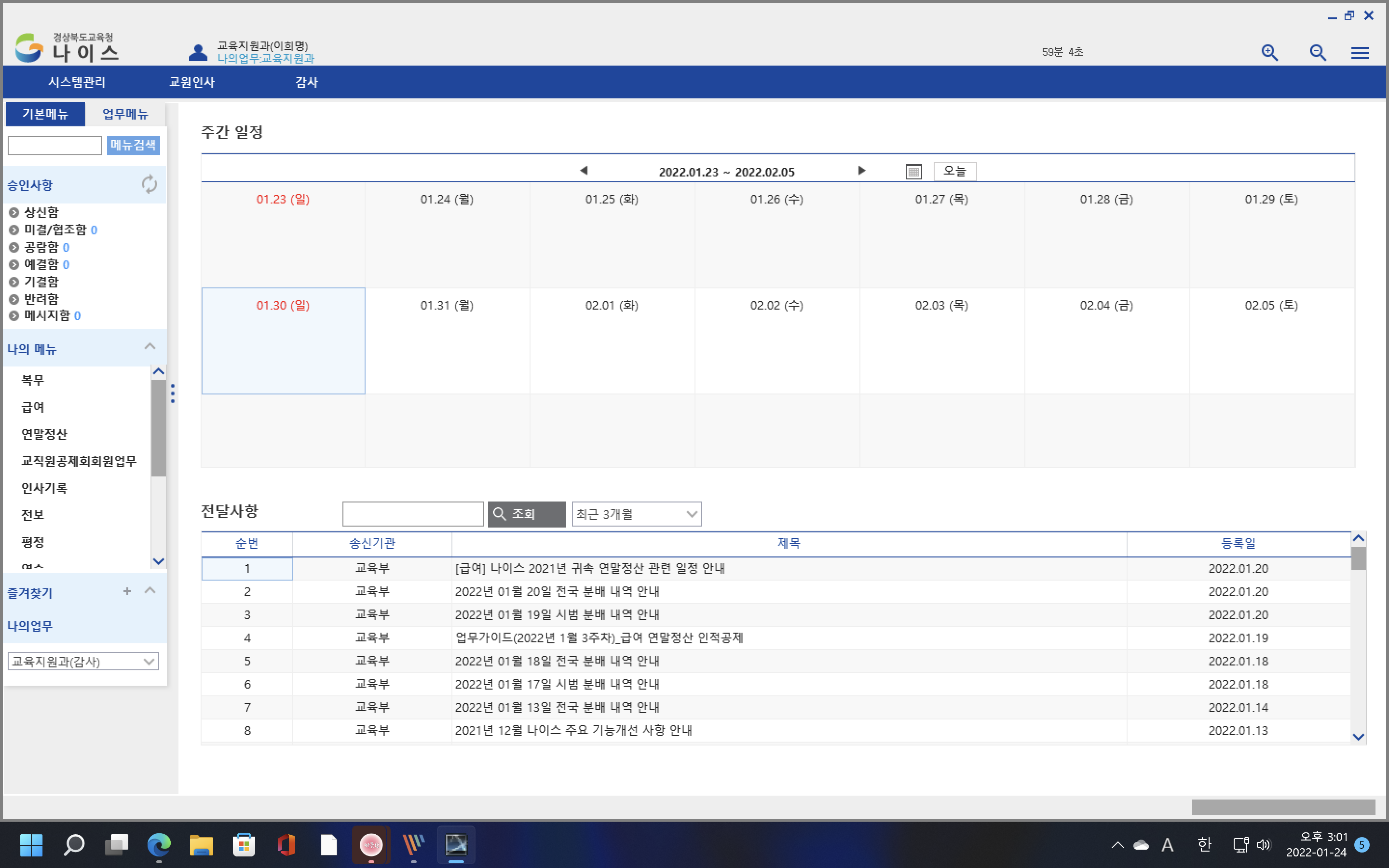 먼저 업무포털에서 나이스를 클릭하여 접속했습니다.