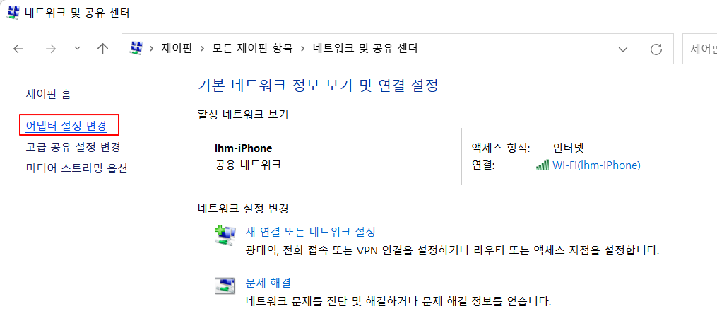 위 조치를 해도 해결이 안되는 윈도우즈11 skt 핫스팟 사용시 문제해결 방법입니다. 간단함 주의..