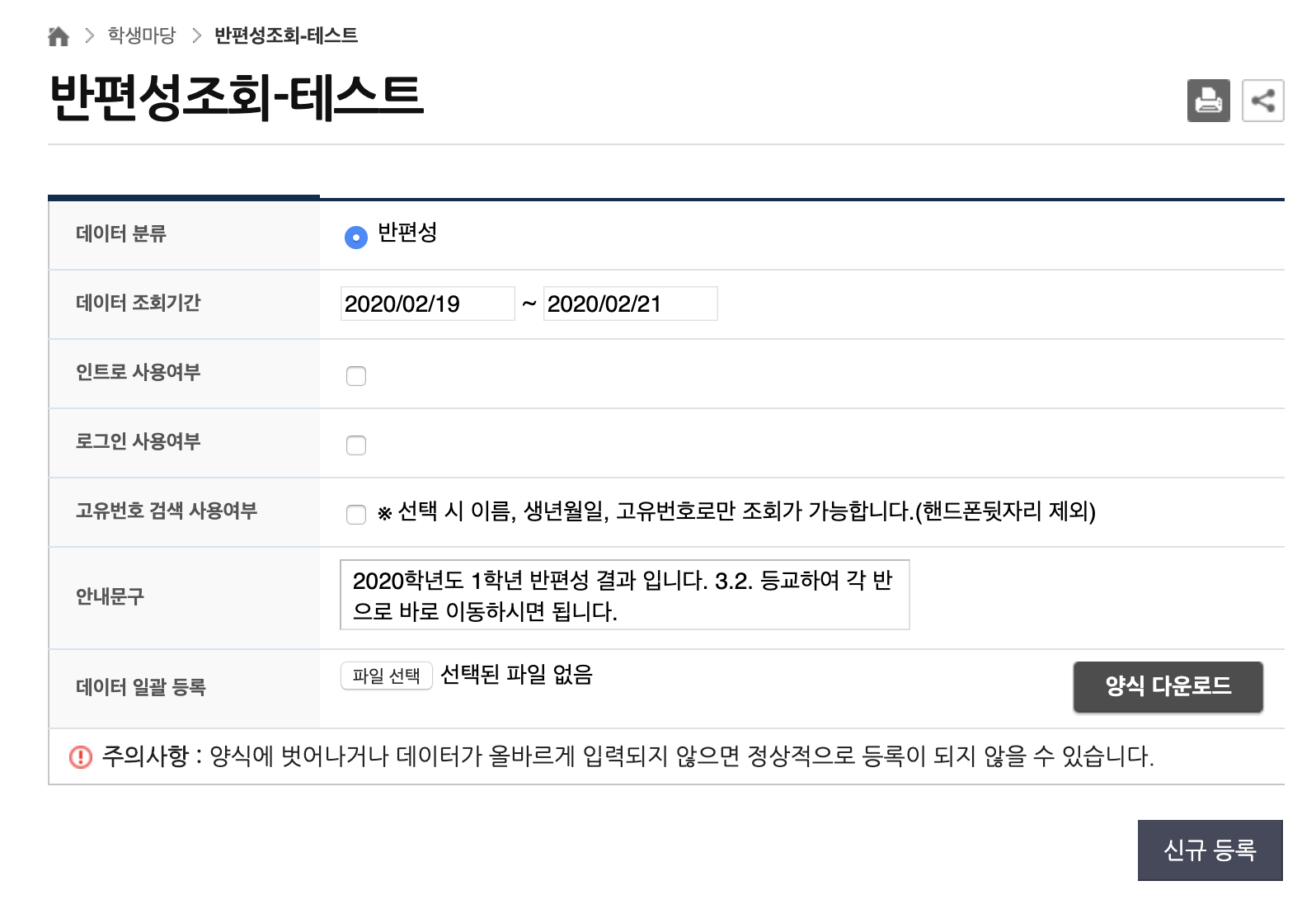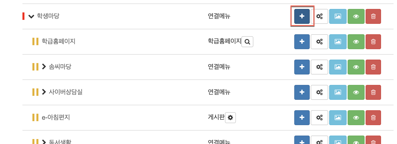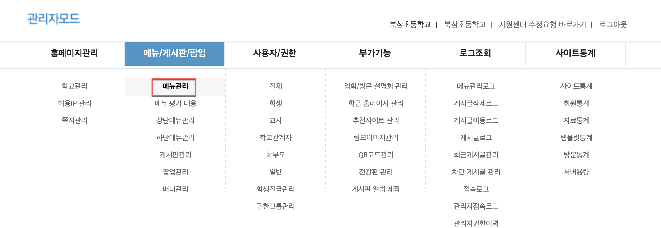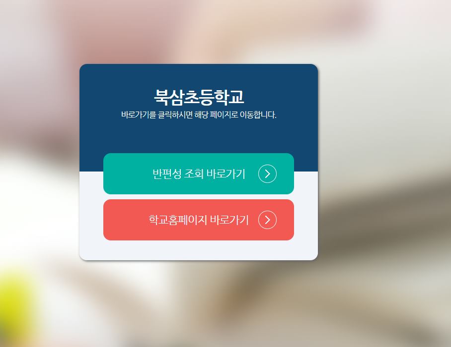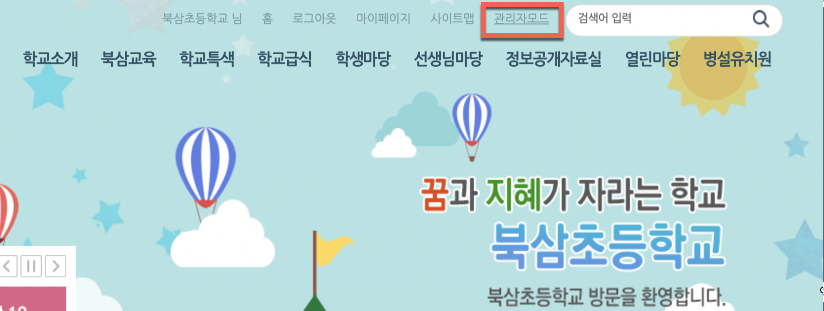 외부 링크를 설정하는 방법은 학교 홈페이지 관리자 계정(R100200***)으로 접속한 후 학급 홈페이지 메뉴로 접속 후 학급 홈페이지 생성을 클릭하면 입력이 가능합니다.
