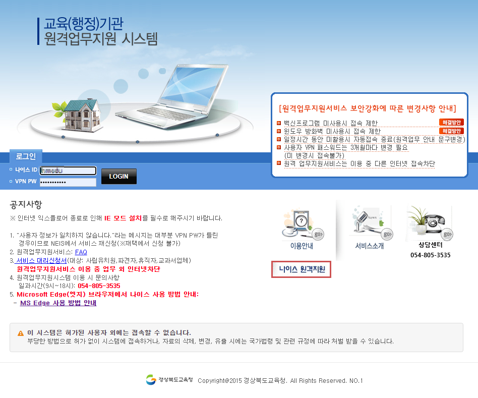 - 회원가입한 이메일(**@gbe.kr)과 비밀번호를 입력합니다.