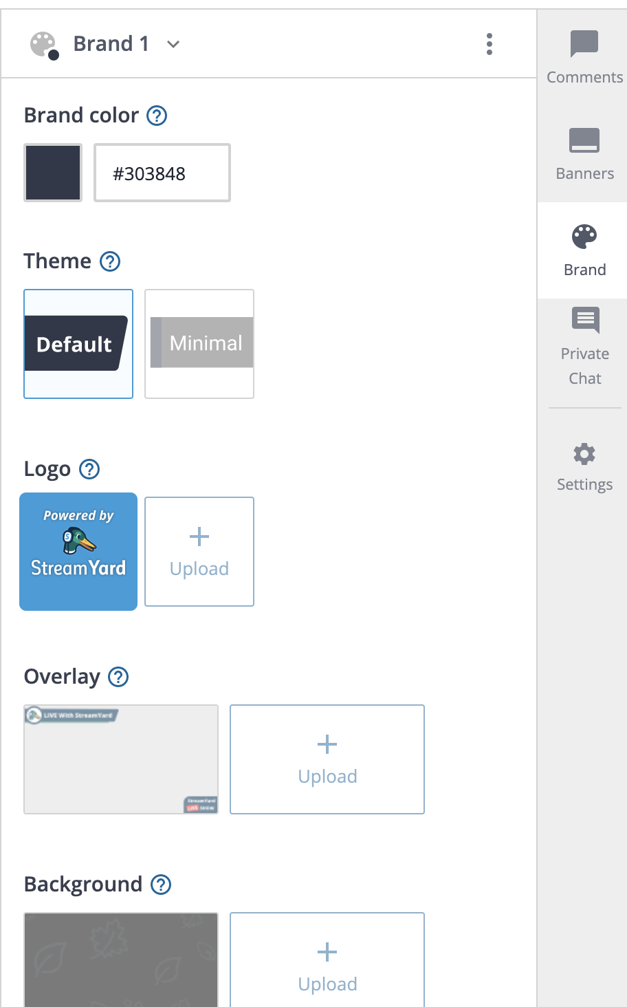 "Brand" 메뉴의 경우 유료 계정일때 사용자 설정이 대부분 가능합니다.
